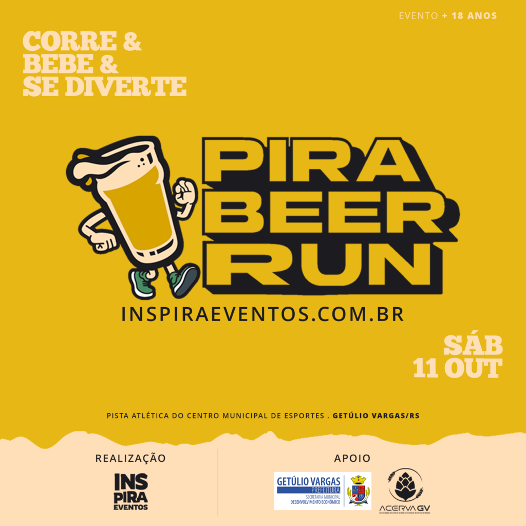 Lembre-se de marcar @inspiraeventos.br e @festivalcervejas.gv para incentivar outras pessoas a conhecerem o eventos e terem a experiência de participar da Pira Beer Run!